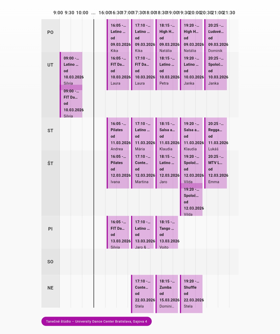 Aktuálny rozvrh kurzov od 9.3.2026 do 10.5.2026